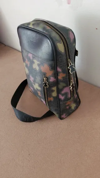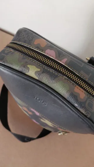 Bolso Tous con un diseño llamativo de camuflaje multicolor. - Estampado de camuflaje con tonos variados. - Cremalleras frontales con detalle de osito. - Correa ajustable para llevar al hombro. Mirar todas las fotos tiene defectos aceptables👀