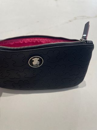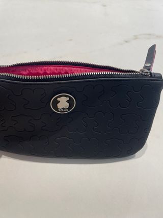 Bolso de maquillaje TOUS con un diseño moderno y práctico. Su interior vibrante en color rosa contrasta con el exterior negro. - Estampado de ositos característico de la marca. - Cierre de cremallera. - Detalle metálico con el logo de TOUS.