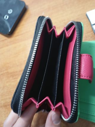 Monedero/ cartera auténtico, no es imitación. Está sin usar, pero de no usar por dentro tiene pequeños desperfectos de la propia piel en el interior (incluyo fotos)por eso está un poquito más económico. Fue regalo de hace tiempo pero no es mi estilo.