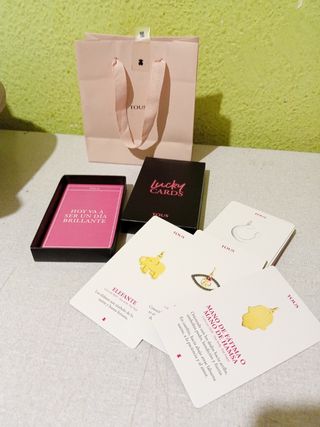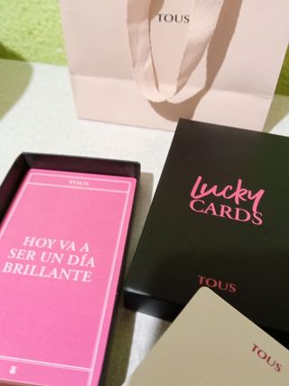 Baraja de cartas de la marca Tous, modelo Lucky Cards. Incluye una bolsa de regalo. - Tarjetas con diseños de amuletos. - Mensajes inspiradores en español.