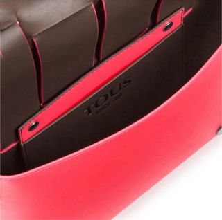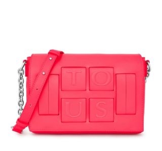 Bolso de la marca Tous, sin estrenar. - Color rosa vibrante. - Diseño con letras grabadas. - Correa de cadena y piel.