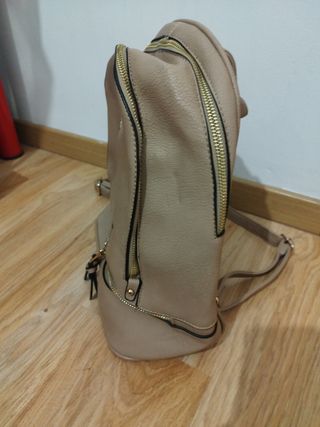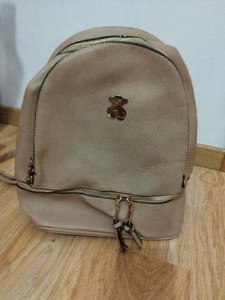 Mochila color beige estilo Tous sin usar. Tiene 3 cremalleras y un bolsillo de seguridad.