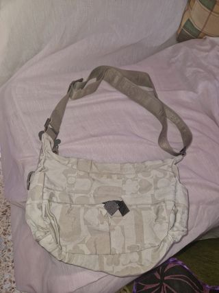 Precioso bolso Tous, ideal para el día a día. Es de color beige con detalles multicolor. - Bolso bandolera de hombro. - Diseño original de Tous. - Material de textura agradable al tacto.
