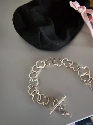 Elegante pulsera de la marca Tous, con un diseño delicado de osos entrelazados. - Original(no encuentro el certificado) - Plata. - Cierre de tipo T-bar. - Se entrega con caja y bolsa Tous. - Medidas 18cm
