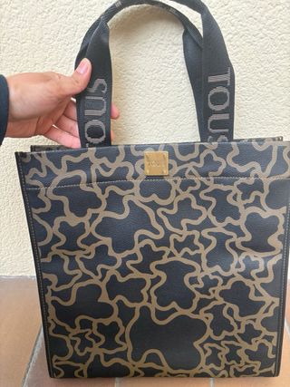 Bolso de asas Tous con un diseño llamativo. - Estampado de osos característico de la marca. - Base y asas en piel negra y marrón con 4 cremalleras q van perfectamente ,por dentro forrado con su estampados de Ositos Tous y apartados,3 en concreto todo va bien y funcionan las cremalleras con su logos de Ositos Tous claro.