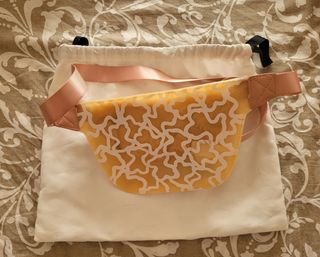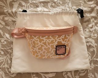 Preciosa riñonera Tous de color beige y rosa. Está en perfecto estado. - Riñonera bandolera Tous. - Material transparente con estampado. - Incluye bolsa de tela protectora. Riñonera Tous Rubber de vinilo medio-transparente en color rosa. Correa larga ajustable, cierre con cremallera. Medidas: 23 x 15 x 7cm.