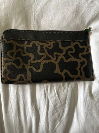Elegante cartera Tous con un diseño distintivo. - Estampado de osos característico de la marca. - Combinación de colores negro y marrón. - Detalle de cremallera superior. - Pequeño charm decorativo en la cremallera.