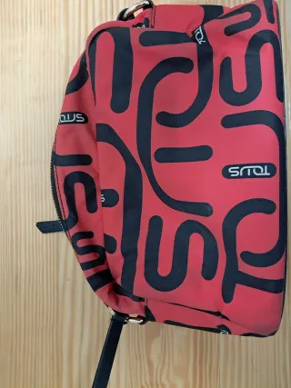 Maletín Tous con un diseño estampado único. Estampado de osos Tous. Correa ajustable. Tiene bastante uso, las asas están un poco desilachadas, una cremallera no funciona y por dentro tiene alguna mancha, necesitaría limpieza. Es precioso y arreglando esto, el maletín está bien. Es precioso 💖