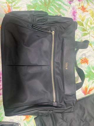 Bolso cambiador de la marca Tous en color negro con un discreto estampado. - Diseño con múltiples compartimentos. - Cierre de cremallera. - Incluye asas y correa ajustable.