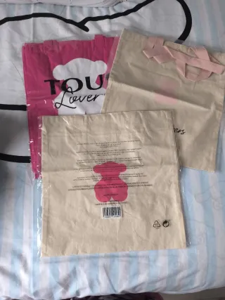 Conjunto de bolsos de tela de la marca Tous. Precio x unidad - Un bolso en color rosa. - Dos bolsos en color beige.