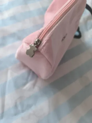 Neceser de viaje Tous en color rosa. Es un accesorio práctico y elegante. Sin uso - Material suave al tacto. - Cierre de cremallera plateada.