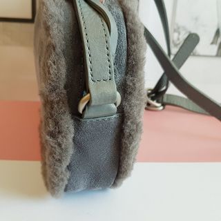Bolso de la marca UGG, de ante y pelito como las botas. Dentro tiene tres compartimentos, uno de ellos con cremallera. Mide 28x42.