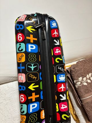 Maleta de cabina con un divertido diseño lleno de iconos y números. - Diseño llamativo y original. - Tamaño ideal para viajes cortos o como equipaje de mano.