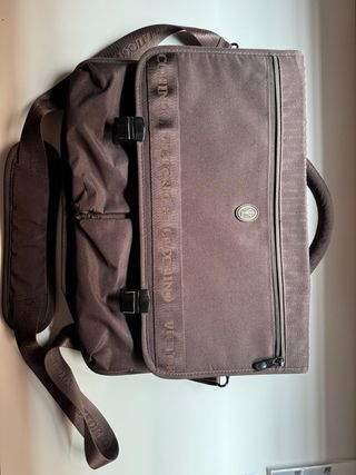 Maletín de la marca Victorio & Lucchino en color marrón con varios compartimentos. Asa de mano y correa para hombro.