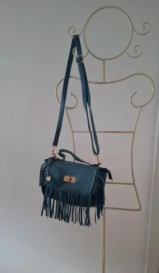 Bolso de mano con un diseño llamativo y moderno. - Adornado con flecos decorativos. - Asa de mano cómoda.