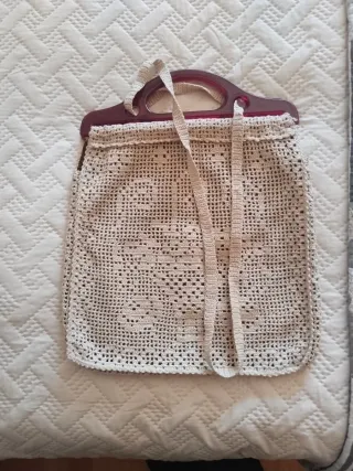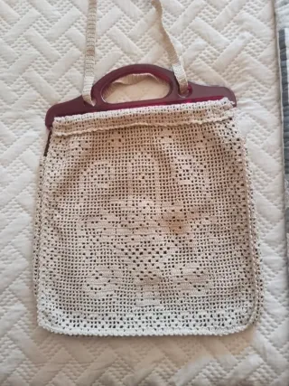 Bolso de mano vintage tejido a ganchillo con un diseño floral. - Asa de plástico rígido. - Cierre superior. - Forro interior.