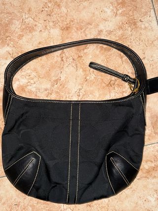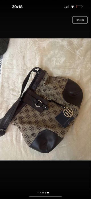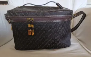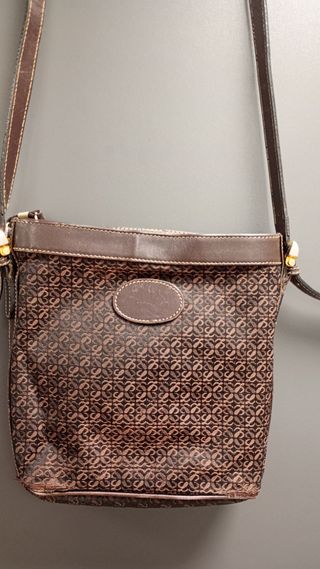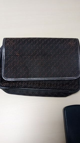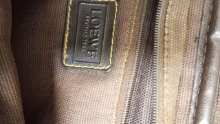 Bolso bandolera clásico de la casa en textil gruesa loneta con los logos repetidos en marrón y negro, ribetes y correa de piél. Un clásico para diario. Tiene señales de uso y en los laterales un poco desgaste, pero nada más que sea reseñable. Medidas: 26*20*4 fondo. Tapa protectora, departamento uno cierre con cremallera, y apertura principal también cierre con cremallera. Tiradores de la cremallera en metal grueso, grabado en el metal logo de Loewe. Un bolso de alta marca para usar diariamente.