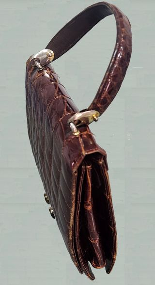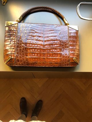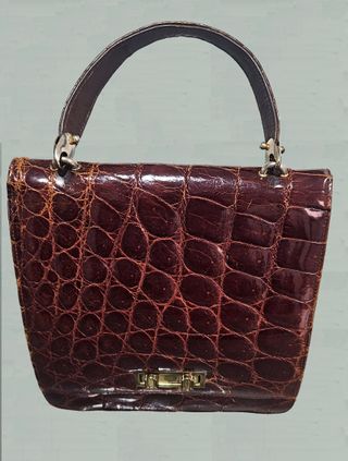 - Bolso Piel Cocodrilo Vintage Marrón - Cierre metálico dorado. - Asa superior para llevar en mano.
