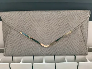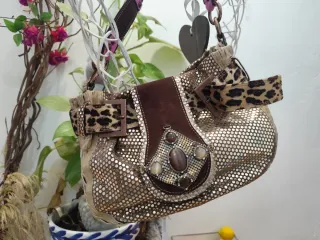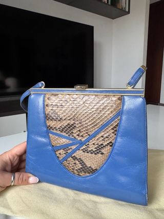 - Bolso de piel de serpiente. - Detalles metálicos dorados.