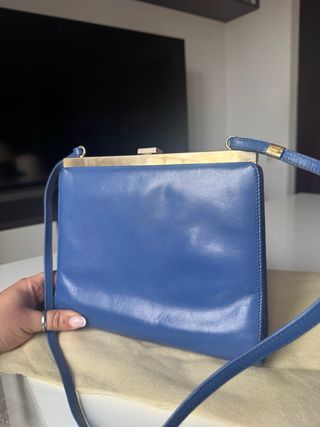 Bolso azul oscuro Pourchet Paris para mujer, bolso de hombro vintage de piel, fabricado en Francia para mujer, bolso de hombro vintage de piel, fabricado en Francia Muy buen estado Dimenciones: 18 x 18 cm