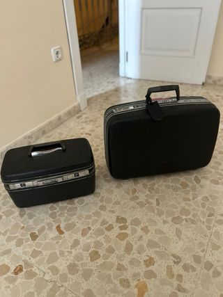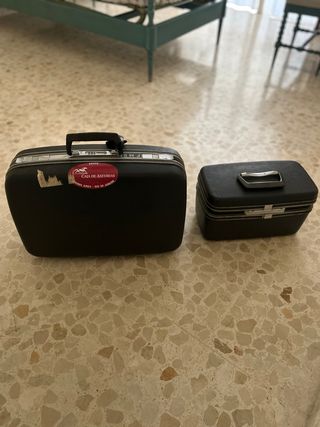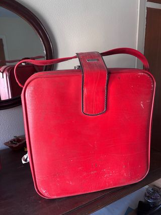 Set de dos maletas vintage en color rojo. Perfectas para añadir un toque retro a tu hogar o para tus viajes. - Diseño clásico. - Asas superiores. - Cierres de hebilla. Se envían o entrego en metro Puerta del Ángel