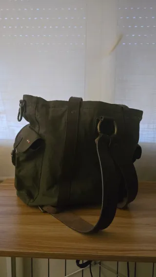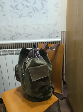 Bolso de lona con detalles en piel. Estilo vintage Uso de bolsa o mochila. Producto oficial descatalogado, nunca se ha viajado con ella. O desgaste. Mas de 200€ en tienda.