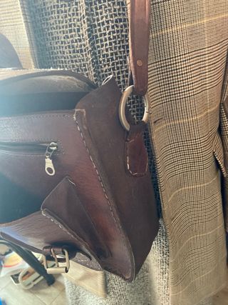 Ver fotos para detalle de uso , este Bolso de cuero de silla es de pelicula! y está inspirado en los años 50 esta tratado sin hongos ni olor, y tiene argollas nuevas . - Material: Cuero. - Diseño: Estilo silla. - Época: Inspiración años 50.
