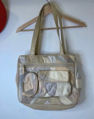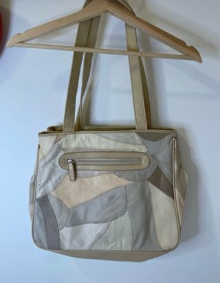 Bolso de mano con diseño patchwork. - Elaborado en piel. - Combinación de parches en tonos beige y multicolor. - Asa cómoda para llevar al hombro.