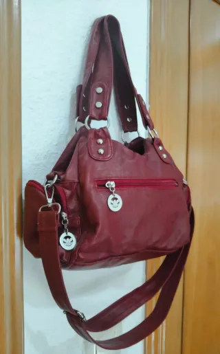 Bolso de moto de cuero, vintage. De hombro, de mano o cruzado. Color : Burgundy. Estilo 90's