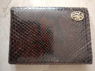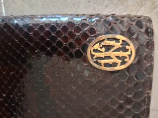 Antigua y Elegante cartera vintage con un diseño de piel de serpiente en tonos marrones. Años 70.muy bien conservada. Algunos signos de desgaste como se ve en las fotos - Material exterior: Piel de serpiente. - Detalle metálico dorado con iniciales.