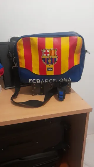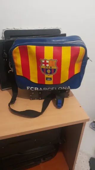 Bolso de estilo vintage con los colores y el escudo del FC Barcelona. Ideal para los aficionados del equipo. - Diseño a rayas rojas y amarillas. - Logo oficial del FC Barcelona. - Correa ajustable para llevar al hombro.