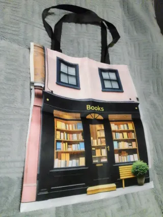 Nuevo bolso tote de hombro, material lona con dibujo de una librería vintage o antigua precioso, con impresión delante y detrás igual. Medidas en las fotos (40 altura x 35 ancho la bolsa, SIN las asas). Regalo ideal para amantes de los libros, profesores, estudiantes... Recogida en Rubí y envíos.