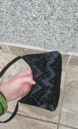 Hola, vendo en Trobajo del Camino (León), este elegante Bolso de mano (VINTAGE, años 60), con un diseño intrincado de pedrería. Estilo retro para ocasiones especiales. Tiene cierre de cremallera y un compartimento interior. Lo trajo una tía mía de Paris (Francia), hace más de 25 ańos y nunca le hice uso. Tiene correa para la muñeca. Mini bolso negro con cuentas y tela suave tipo fraile. Al laverlo para anunciarlo saqué un hilo que no ha roto y 3 cuentas han salido un poco para afuera, pero si se pega ó cose queda como nuevo. Se puede ver sin ningún compromiso. Posible envío, pero los gastos corren por cuenta del comprador. Gracias