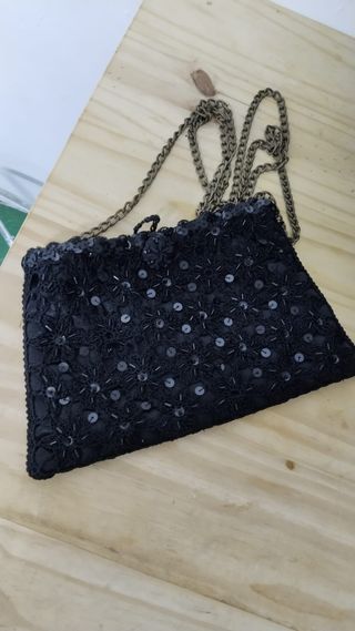 Elegante bolso vintage, perfecto para ocasiones especiales. - Diseño con abalorios. - Cadena metálica. - Cierre seguro.