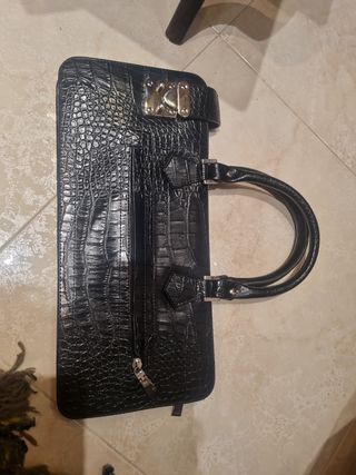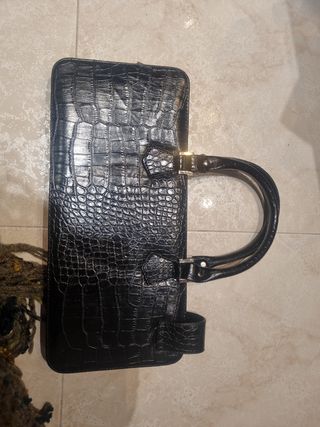Bolso de vestir elegante clásico estilo vintage, negro brillante, el bolso es rígido, de piel dura. Está en buen estado.