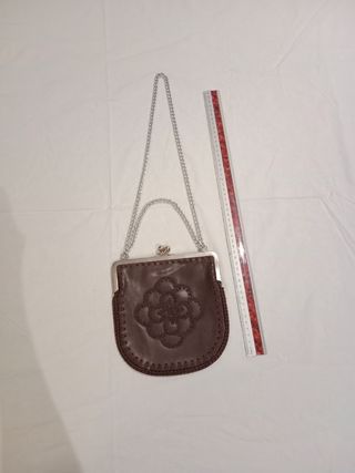 Muy fino y elegante. Bolsito de manoy para colgar en hombro, sin estrenar. Importado por el Corte inglés. Ancho 19 cm. Alto 12,5 cm.