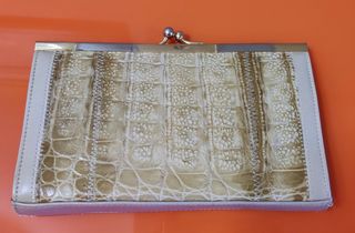 Bolso de fiesta años 60/70 muy vintage pero muy muy pocos usos. Está impecable. Piel auténtica de cocodrilo. Cadena metálica dorada para llevar en el hombro.