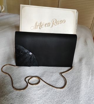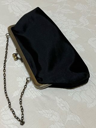 Cartera de mano de raso negro. Vintage. Elegante. Boda. ceremonia.