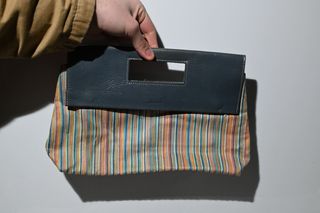 Bolso clutch rayas coloridas y cuero azul vintage