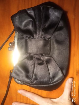 Bolso de fiesta negro y plata con lazo , tiene para colgar. cómo nuevo
