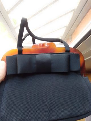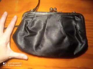 BOLSO NEGRO DE FIESTA, BODA, CON CIERRE VINTAGE DE NÁCAR.