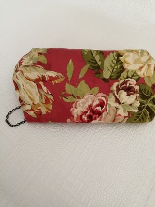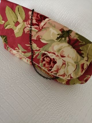 Bolso mano y hombro con cadena, de tela de tapiceria vintage, forrado y con cierre de clik imantado. No hay mas que uno.