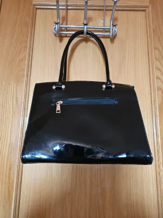 Conjunto de bolso y zapatos de charol negros, estilo vintage. Los zapatos miden 25 cm del talón a la punta. - Bolso de mano con asa. - Zapatos de salón con detalle de lazo. RECOGER EN PERSONA EN ALICANTE , ASPE O ALREDEDORES. POSIBLE ENVIO .