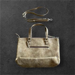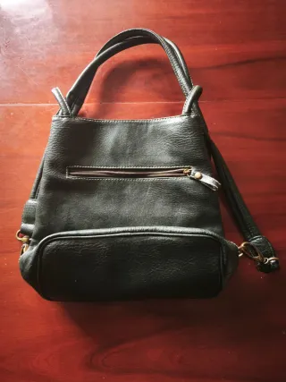 Bolso de piel sintética,con un diseño moderno y versátil.Acabado vintage.En buen estado.Recogida en mano o envío a toda la península (gastos de envío a cargo del comprador). - Material: Piel sintética - Color: Verde y marrón. - Cierre: Cremallera. - Asas: Dobles. - Detalles: Hebillas metálicas.