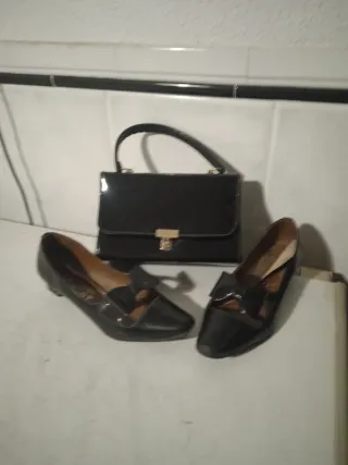 BOLSO Y ZAPATOS DE CHAROL NEGROS VINTAGE.