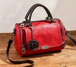 Elegante bolso de mano para mujer. - Material: Piel. - Color: Rojo vibrante. - Diseño clásico y atemporal. - Asa cómoda para llevar al hombro.