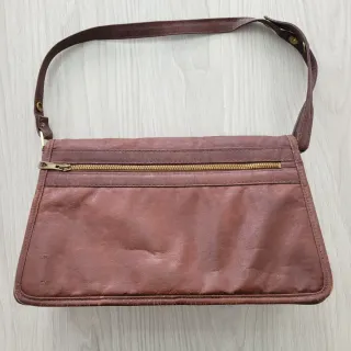 Bolso bandolera de cuero estilo mensajero. Ideal para el día a día, viajes, o como complemento casual y con carácter. Material: 100% cuero genuino de alta calidad con un acabado que mejora con el tiempo. Color marrón oscuro, berenjena o vino con un toque vintage. Detalles: Correa ajustable y resistente para llevar al hombro o cruzado, un bolsillo exterior con cremallera vertical para acceso rápido, y un compartimento principal espacioso. Estado: En excelentes condiciones, con el desgaste natural del cuero que le da personalidad y autenticidad. Unisex: Un diseño versátil, perfecto tanto para hombre como para mujer.