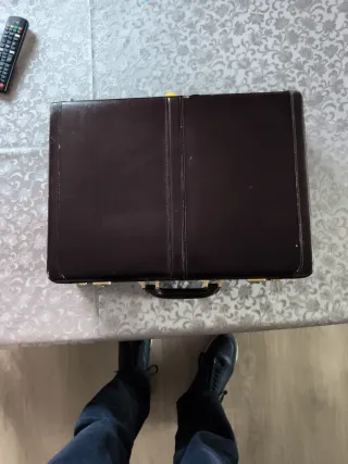 Elegante maletín antiguo de color granate. Ideal para coleccionistas o para darle un toque clásico a tu estilo. - Presenta un diseño vintage. - Tiene compartimentos interiores para una organización óptima. - Asa de mano resistente, visagras metálicas y cierre de combinacion. Por dentro está perfecto, por fuera tiene toques sobre todo en el asa. En general buen estado.