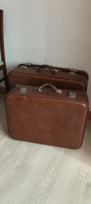 Vendo dos maletas antiguas/vintage de color marrón, originales, con un precioso estilo retro. Están fabricadas en material rígido, con cierres metálicos y asas originales, conservando el encanto del paso del tiempo. Presentan signos normales de uso acordes a su antigüedad (ver fotos), lo que las hace ideales tanto para coleccionistas, decoración vintage, escaparates, escenografía, fotografía, o como piezas decorativas en hogares, tiendas o eventos. Se venden juntas como lote. Perfectas para quienes buscan un toque nostálgico, se pueden ver sin compromiso.
