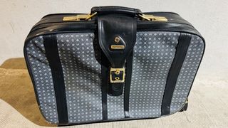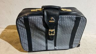 Maleta vintage de la marca Samsonite con un diseño clásico y práctico. - Diseño con estampado de S y líneas verticales. - Asa superior y cierres dorados. - Correa de sujeción frontal con hebilla. - Ruedas para facilitar el transporte. #Precio negociable #